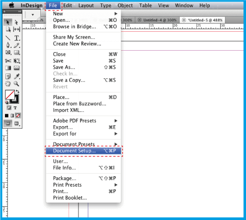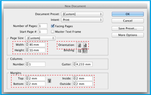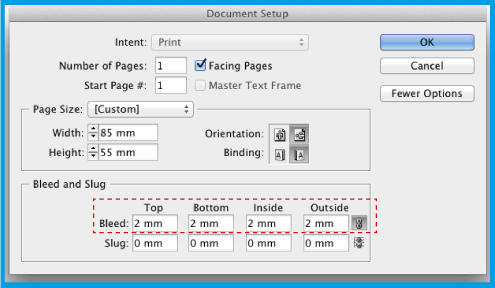 .Faça com que os elementos do seu fundo (imagens, cor, linhas...) batam nas extremidades. Coloque os textos dentro da linha rosa (margem de segurança), garantindo que os mesmos não sofram um corte durante a impressão.