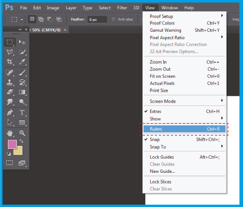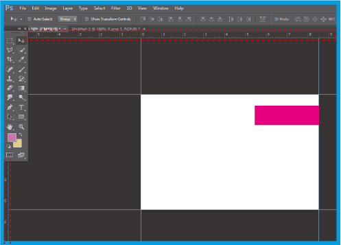 .Aumente o tamanho do , aplicando linhas guia nas extremidades do documento. Se não tiver as guias visíveis, vá a e selecione .