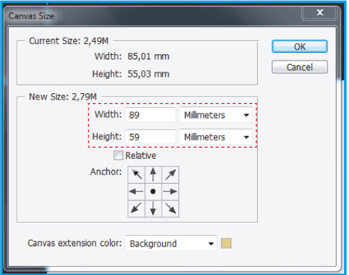 .- Acrescente mais 4mm à altura e à largura de forma que o seu documento tenha margem suficiente para o corte.