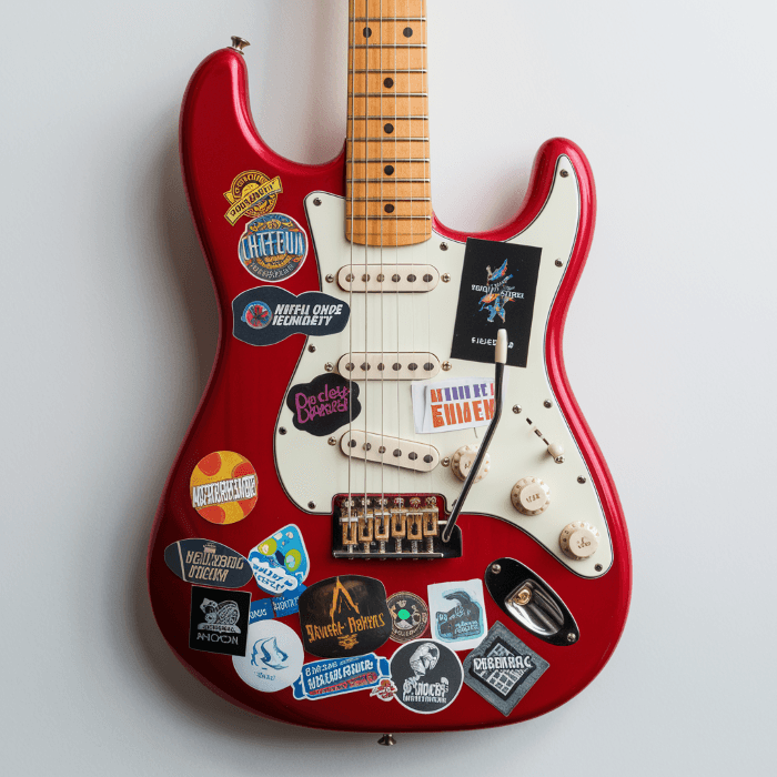 - Adesivos personalizados para guitarras e equipamento musical
