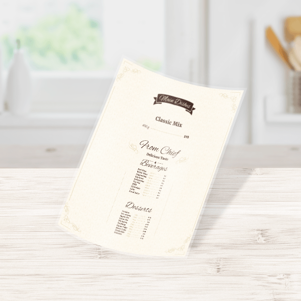 Opte por fazer seu Cardápio de Plástico Personalizado para causar impacto no seu cliente. Personalize Cardápio de Plástico Online à sua medida, e imprima de forma simples e rápida.