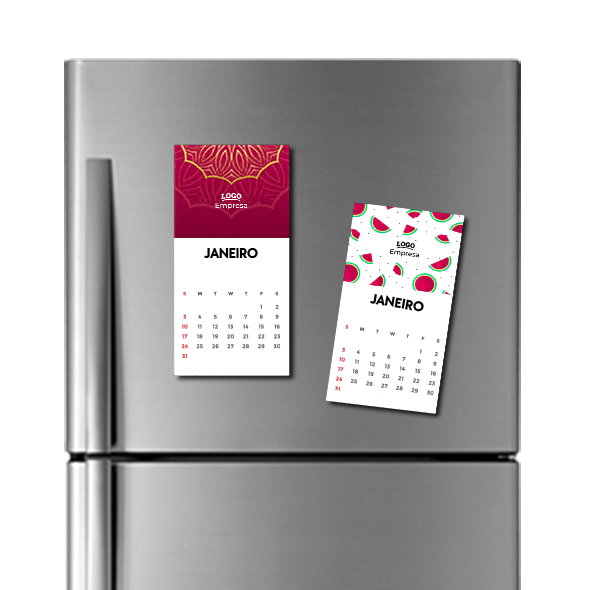 Ímã com Calendário mensal Personalizada. Personalize Ímã com Calendário mensal com um design criativo, com logo, fotos ou texto e crie Ímã com Calendário mensal única. Faça um Ímã com Calendário mensal Personalizada com o logótipo e os contactos da sua empresa.